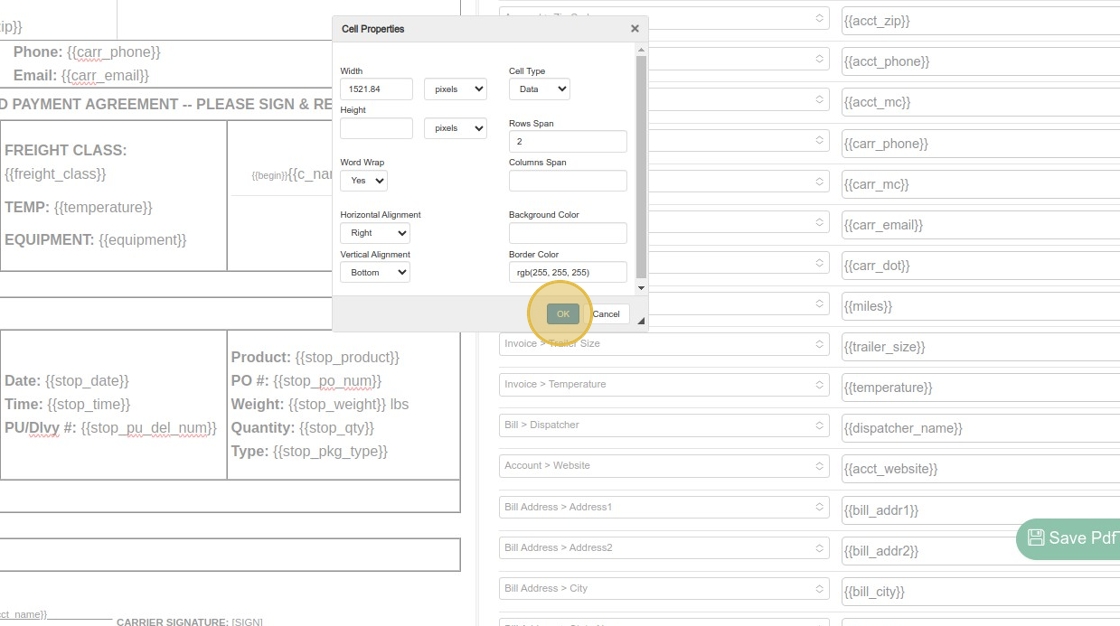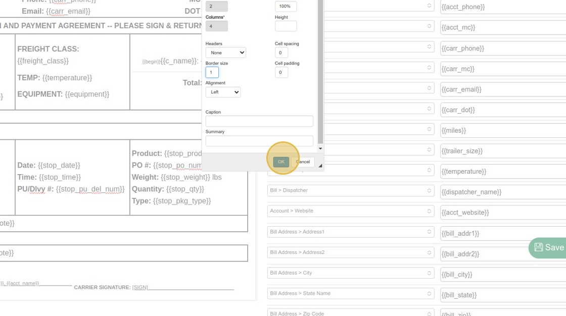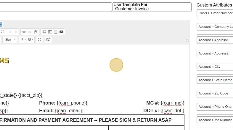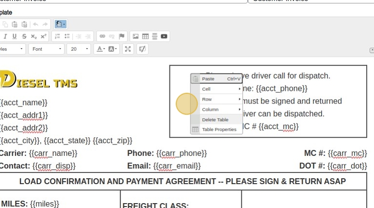 Starting with a copy of a Rate Con Template, Create an Invoice Template by making changes the the former.