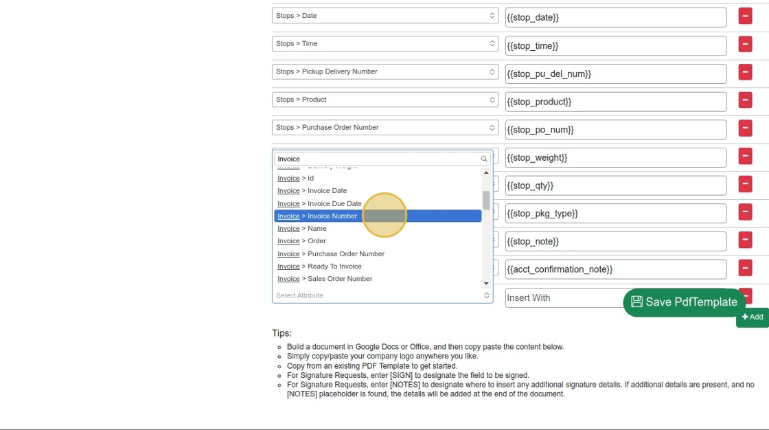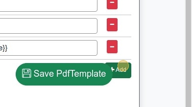 13. In order to add a variable to the PDF, just click on the green Add Button on the bottom-right, at the end of the the list of fields. (It may fall near or behind the Save button, but we will fix that in an future update!)